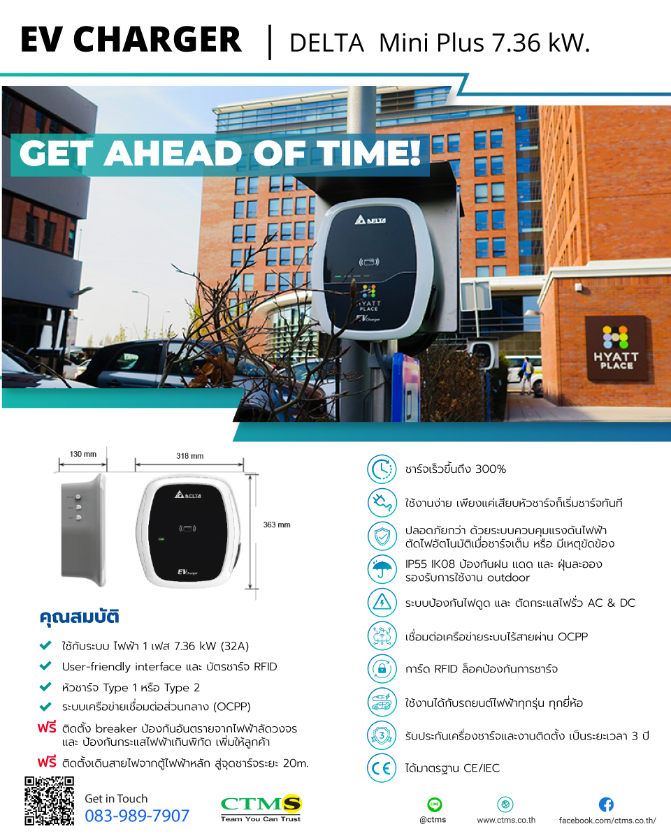 จำหน่าย และรับติดตั้งเครื่องชาร์จรถยนต์ไฟฟ้า ยี่ห้อ Delta
